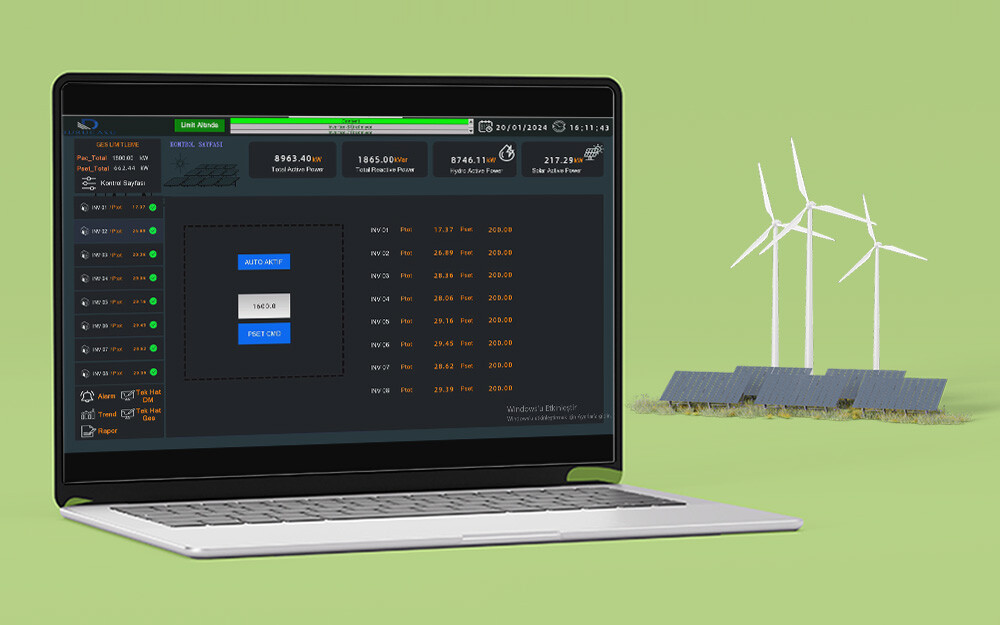 Türkiye’nin birçok bölgesindeki hibrit santrallerde (GES+RES, GES+HES, GES+BES vb.) geliştirdiğimiz SCADA sistemleri ile PPC (Power Plant Controller) uygulamaları gerçekleştiriyoruz. PPC entegrasyonu sayesinde;